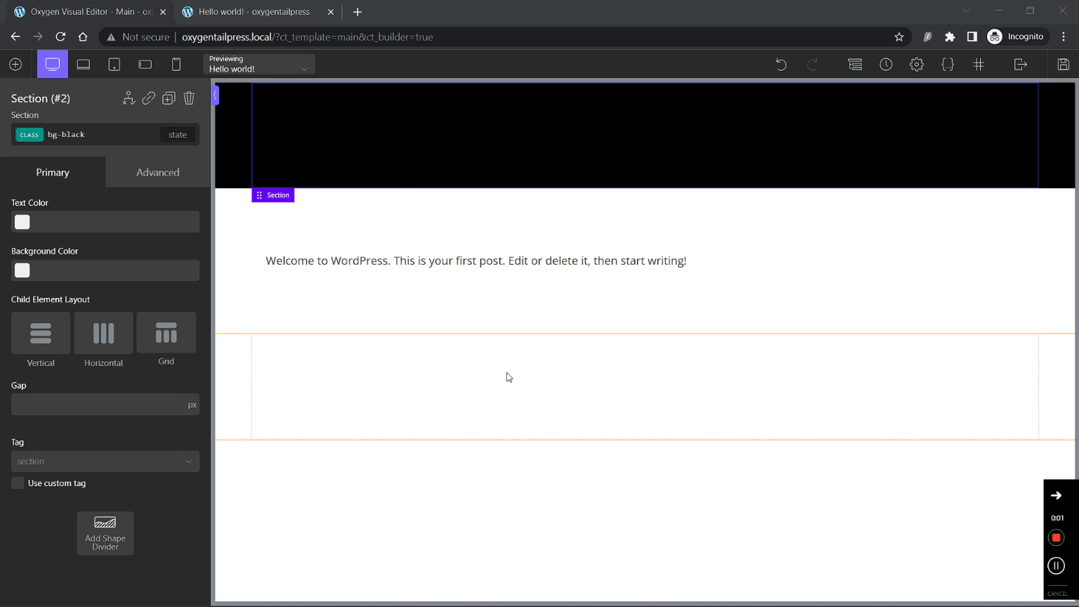 As long as the class is available in Tailwind CSS, you’ll see the changes take place immediately in Classic Oxygen and on the front end.